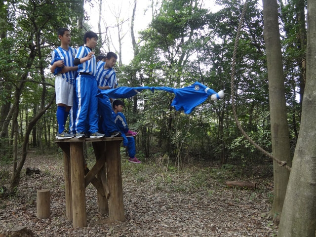 16名が2つのグループに分かれて、仲間と協力しながら、1つ1つの課題に取り組みました。