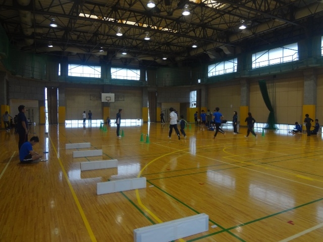 アカデミー生は種目別のグループに分かれて、計測の係や説明、実際に手本をお見せするなどのお手伝いをしました。