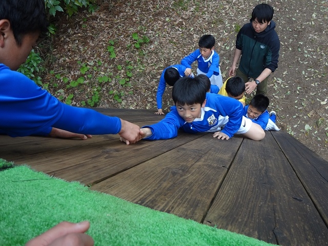 午後のプログラムで一番心に残ったのは、“斜めウォール”です。壁をみんなで登らなくてはならなかったので、とても難しかったです。みんなでアイディアを出し合って頑張りましたが、最後の一人のところがクリアできなかったです。