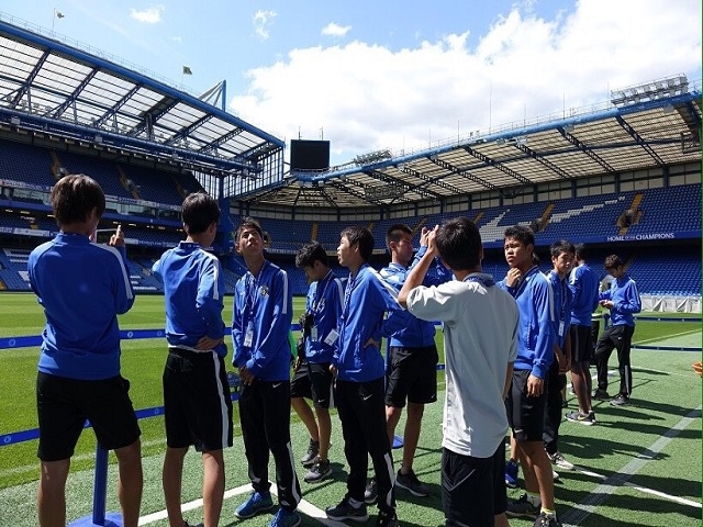 午前のチェルシー戦の後、僕たちは、チェルシーのホームグラウンドである、スタンフォードブリッジのスタジアムツアーに行きました。ウェンブリースタジアムとはまた違う歴史を感じるスタジアムでした。ロッカールームは、ホームとアウェイのチームで広さが違うことや、ピッチのサイズも守備がしやすいように小さく作ってあるということも教えてもらいました。