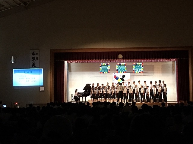 9月16日(土)に、僕たちが通う富士岡中学校の富陽祭・文化の部が行われました。文化の部は、英語スピーチや演劇、吹奏楽部の演奏、そしてクラスごとの合唱がありました。僕たち3年7組のクラス合唱は、「虹」という歌を歌いました。優秀賞は取れませんでしたが、自分たちが持っている力を全部出すことができました。他のクラスもみんな全力で日頃練習してきた成果を出そうと頑張っていて、どのクラスもとてもレベルが高かったです。合唱では悔しい思いもしたけれど、みんなで一生懸命に練習したおかげでいい合唱ができてよかったです。