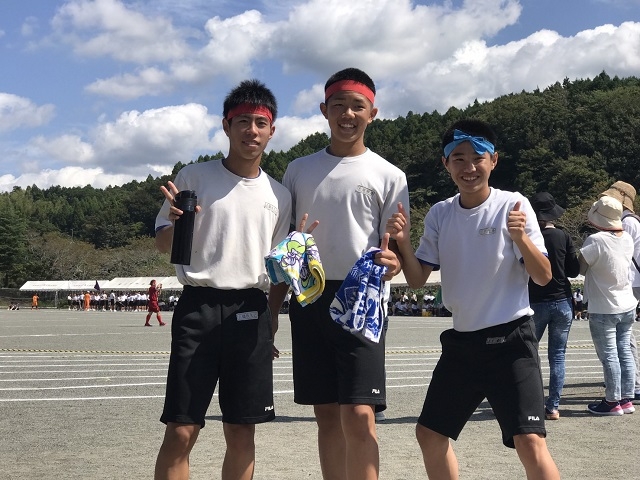 僕たちにとって中学校生活最後となる体育祭が、9月19日(火)に行われました。台風の影響で延期になってしまったけど、とても良い天気の中で無事に行うことができたのでよかったです。体育祭の中で、嬉しい思いも悔しい思いもしました。練習ではうまくいっていたのに、本番ではうまくいかずあまり良い結果が出せず悔しい思いをした大ムカデ。逆に、大縄は、練習ではダメだったのに、本番では良い結果が出てとても嬉しい思いをすることもできました。この体育祭は、文化の部とも合わせてとても充実した良いものとなりました。まだ中学校生活は残っているので、今回の富陽祭を通して得たことや、嬉しい思いをしたこと、協力したことを活かし、勉強もサッカーも頑張りながらおもいっきり楽しみたいです。