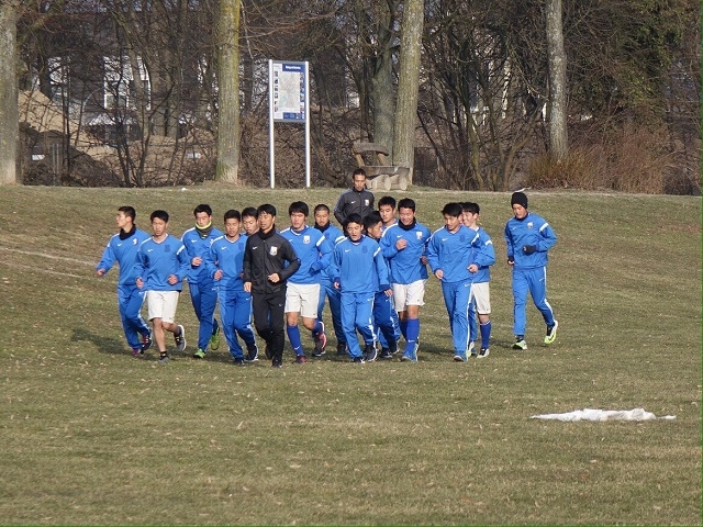 ホテルに到着後、ホテル近くの公園にてすぐに練習を行いました。次の日に行われるインゴルシュタットU19との試合に向けて、ランニング中心のメニューで身体を動かしました。ホテルでは、ドイツと日本との時差が8時間あるので、時差を早く解消できるように、早く寝過ぎないように起きていることを心がけ過ごしました。