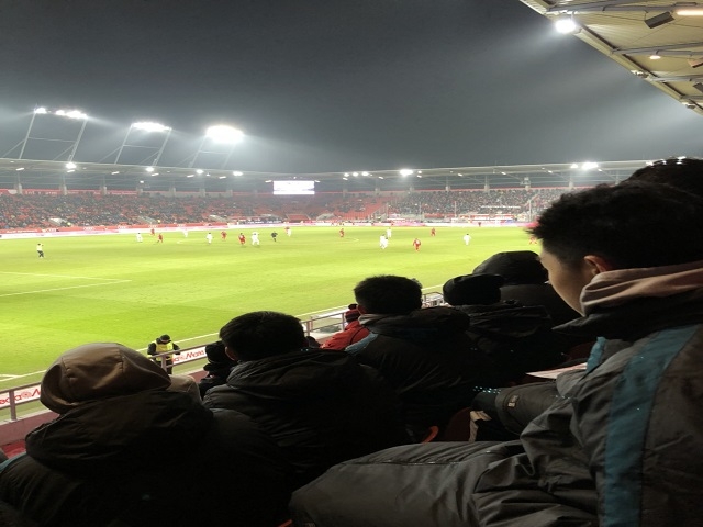 我々の試合後には、ブンデスリーガ2部のインゴルシュタット対ボーフムの試合をスタジアムで観戦しました。選手達の球際での戦いは、とても激しく、ものすごい迫力でした。