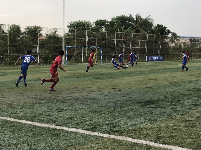 2日目は、まず朝のストレッチから入り、朝食を摂りました。2日目ということで食事の面はみんな慣れてきたようです。午前中は、ミャンマーにあるアカデミーの試合と寮の見学をさせてもらいました。