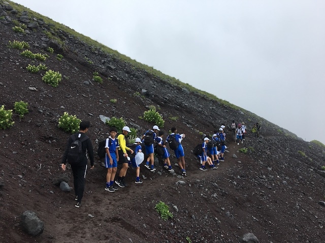 今回の登山は富士山の頂上ではなく、宝永山の頂上に向かうものでした。宝永山に向かう途中は、とても急な上り坂で、足が重く、進むのが限界だったけど、気持ちで前に進みました。気持ちを強く持つというのは、サッカーにも通じるところがあるので、この気持ちを忘れないようにしたいです。