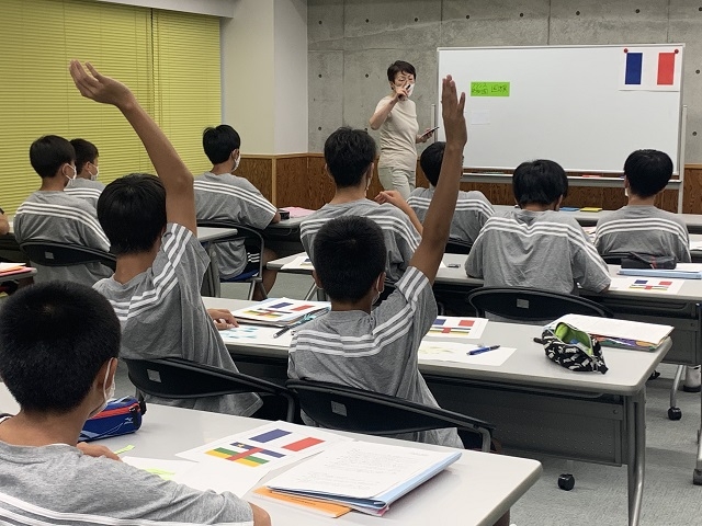 まず初めに、フランスの国旗を説明しました。フランス国旗を知らない人に説明するという前提で、フランス国旗はどういうものかを説明しました。7月に放送されたテレビ番組で紹介されていたこともあり、スムーズに説明できたと思います。