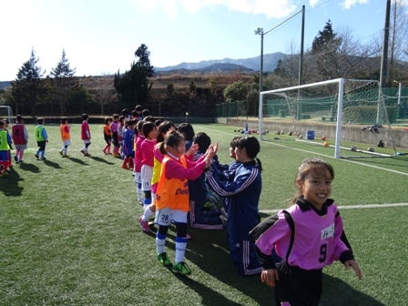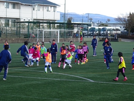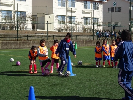今回は小学1年生から4年生までの女の子!50人と一緒にサッカーをしました。