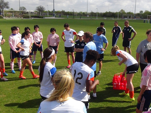 午前のトレーニングでは、Houston Dashという女子のトップリーグのチームのリカバリーに参加させていただきました。アメリカの選手は体格が大きくてとても格好良かったです。トレーニングの内容もとても楽しかったので、緊張もせず、思いっきり楽しむことができました。