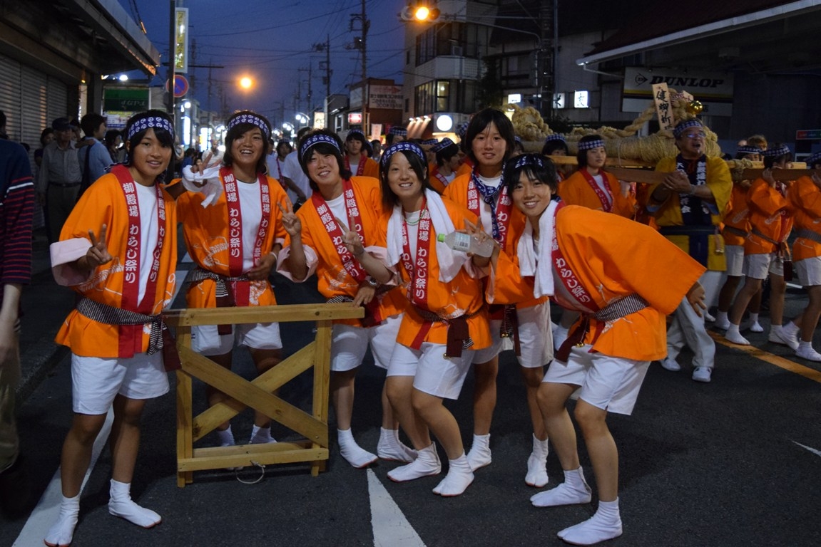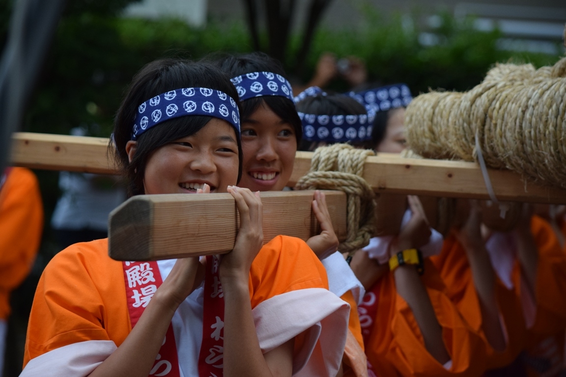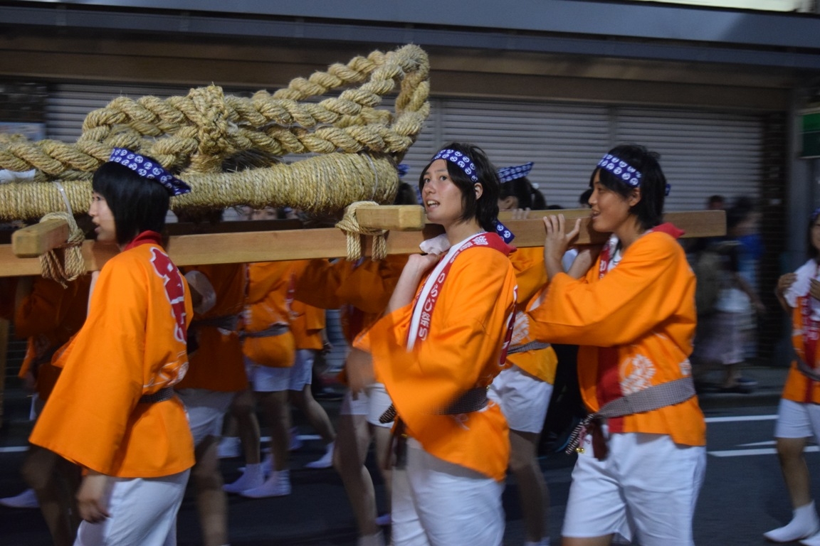 神輿はすごい迫力で、担いでいる人たちの声と足が合っていてかっこいいなと思いました。