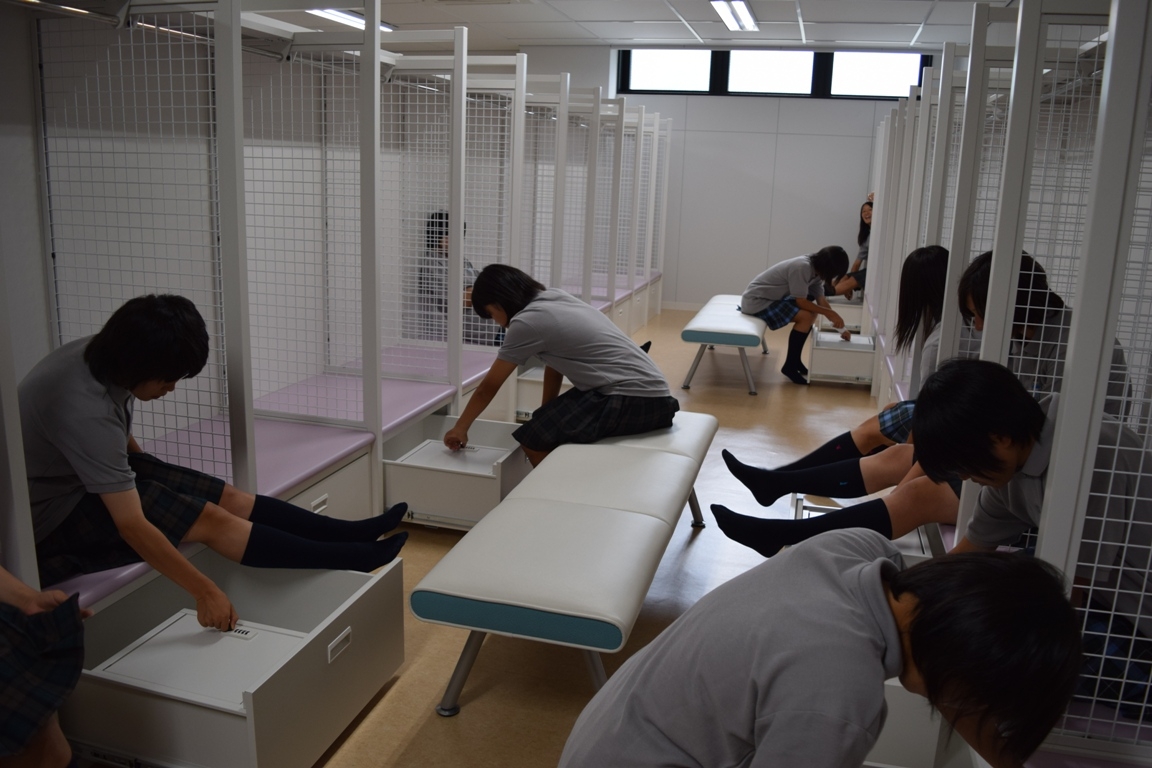 昼食会の後は、私たちがこれから過ごす寮の部屋や、お風呂、ロッカールームなどを見学しました。