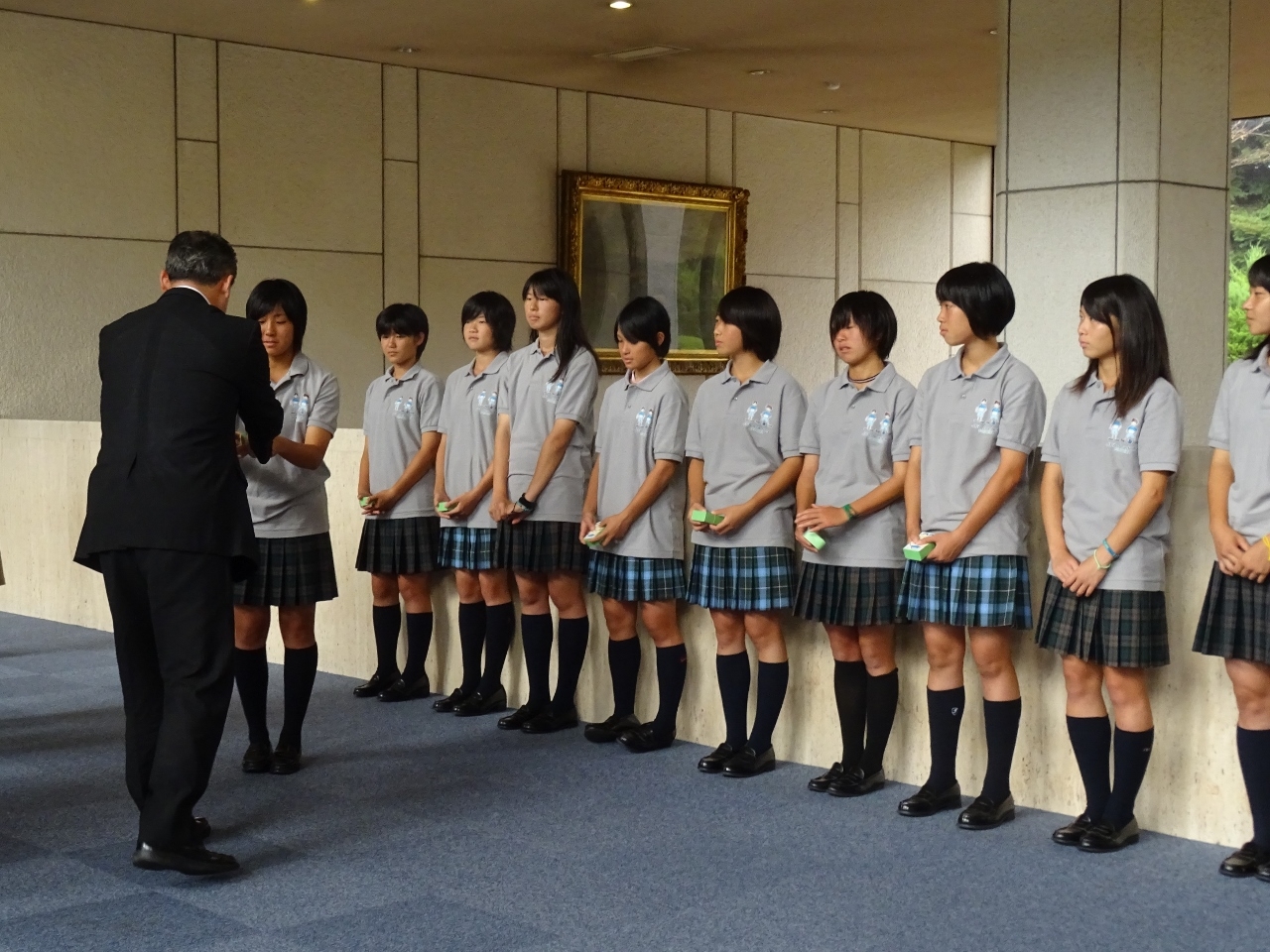 始めのセレモニーでは、裾野市長からアカデミー生全員の名刺を頂き高校生は一人一人手渡しで頂きました。