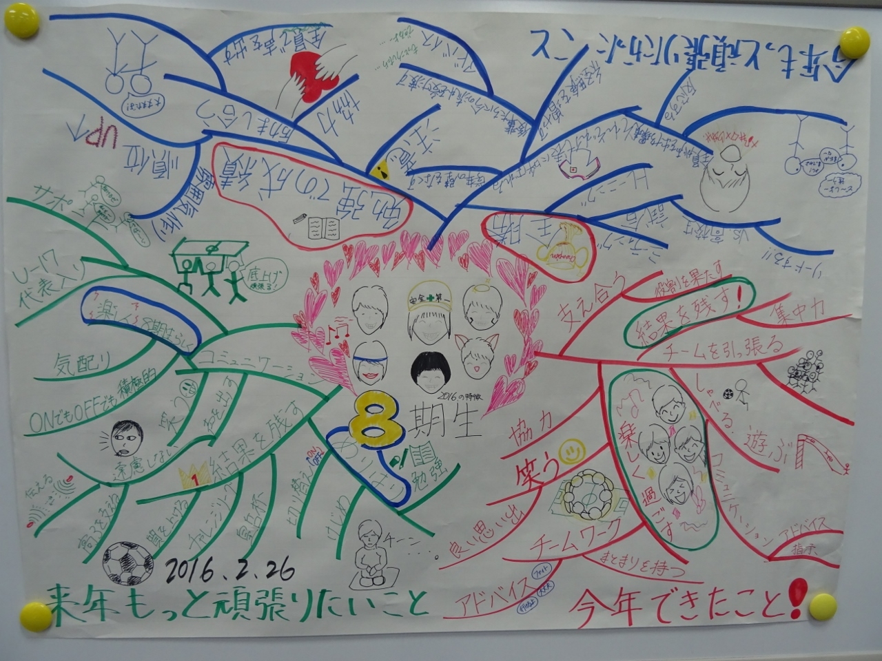 来年頑張りたいことについて、模造紙にまとめて発表しました。