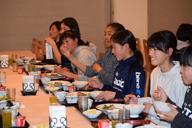 1日目の夕方には11人制の練習試合をしました。その後お風呂の案内や夕食を一緒に食べたりすることで普段私達がどのように帝人の施設を使わせてもらい生活しているのかを知ってもらうことができました。