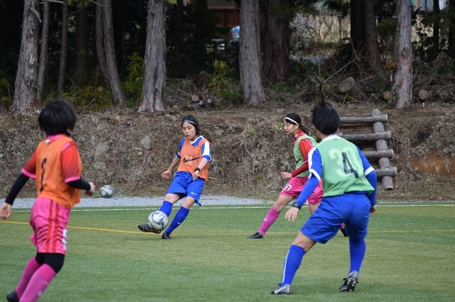 2日目の午前にはアンジュヴィオレBINGOとJFAアカデミー福島の選手が混ざりあったチームでの8人制の試合などを行いました。試合では一緒にプレーしたことがない選手同士でも意見や要求などのコミュニケーションがとれていました。