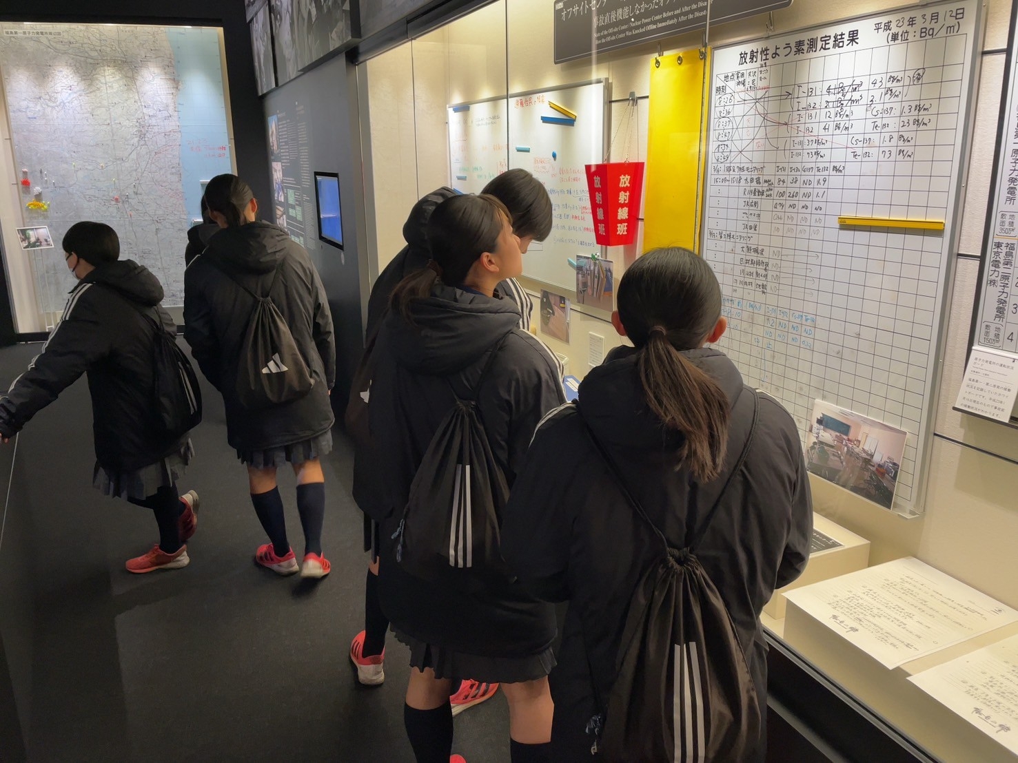 また、伝承館での学習を通して、東日本大震災は自然災害だけでなく、原子力災害もある複合災害だということを初めて知った。災害後も風評被害や流言飛語によってたくさんの人が苦しめられたと聞いて悲しくなった。それをなくすためには、福島の人だけでなく、全国の人、海外の人に放射線について正しい知識を持ってもらう必要があると思う。実際、放射線が何かをそもそも知らない人も多い。私もまだはっきりとは答えられない。風評被害や流言飛語がなかったら、災害関連死をする人も少しは減っていたと思う。災害から14年経った今でも間違った知識で福島の食べ物は食べない人がいると聞いて驚いた。自分ももっと放射線について知って、もし間違ったことを言っている人がいたら正しい情報を教えてあげられるようにしたい。
