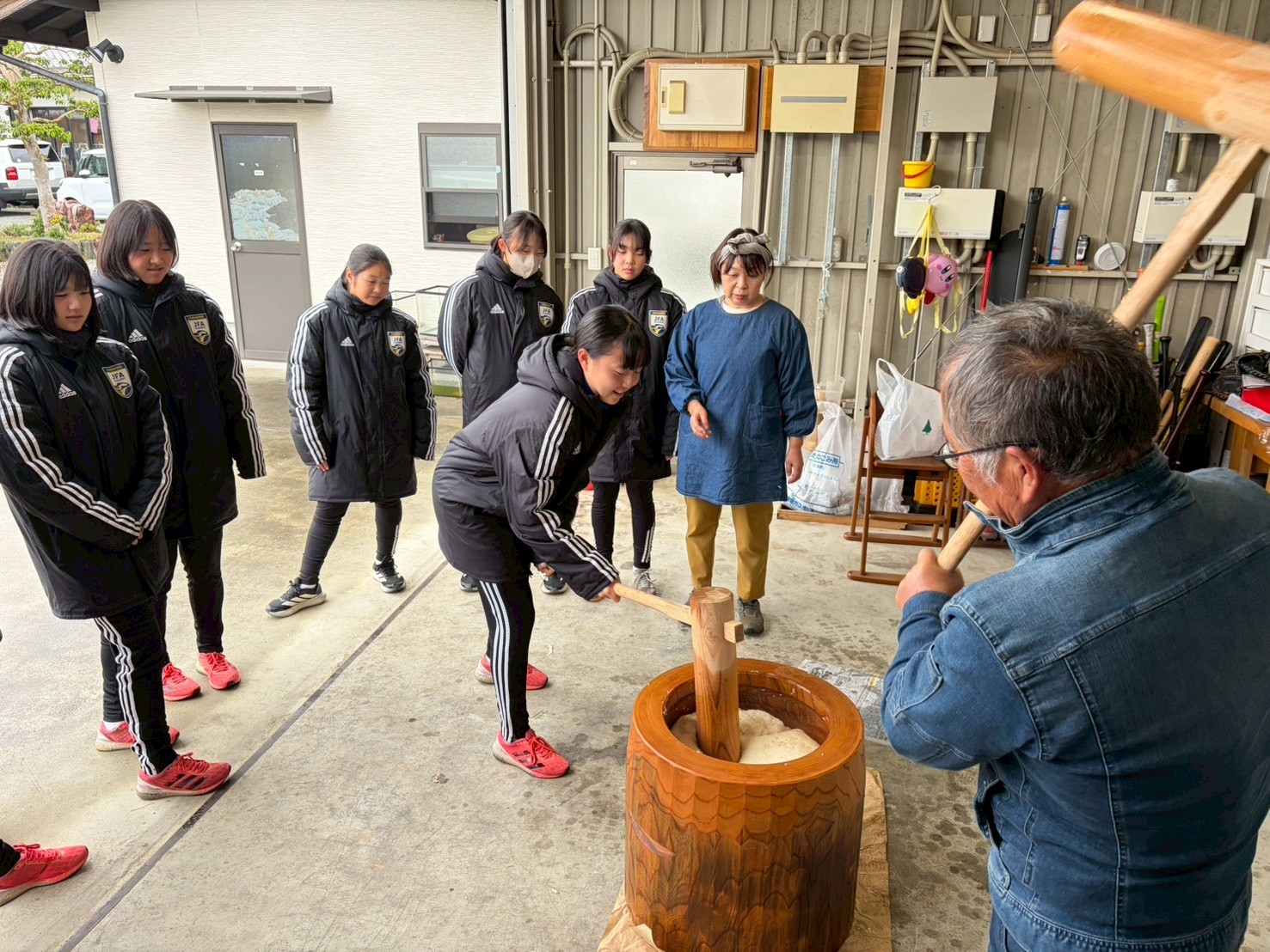 杵(きね)が重くて、一定のリズムで餅をつき続けるのは、とても大変でしたが、みんなで協力することの大切さを学ぶことができました。