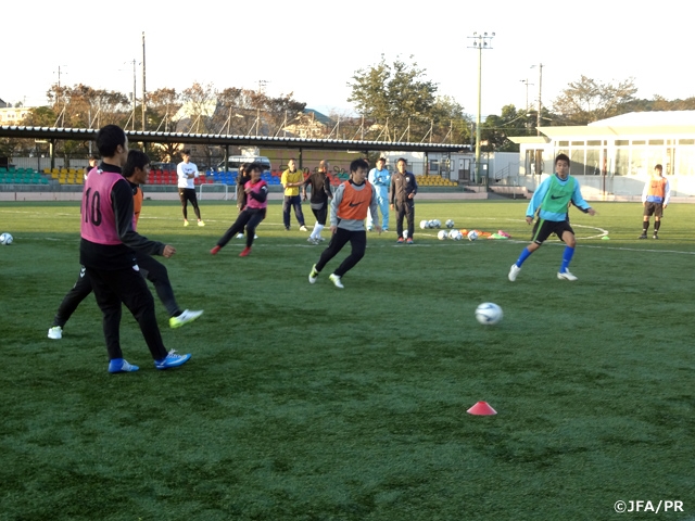 2日間、天候にも恵まれた中でアカデミーリフレッシュ講習会を実施いたしました。初日の講義ではアカデミーの役割と取り組み、JFAが目指すユース育成についてお話しをさせていただきました。実技では【動きながらのテクニック】をテーマに実践し、その後U14/U15のトレーニング見学を行いました。2日目は前日のU14/U15トレーニングを実際に体感していただき、動きながらのテクニックが基本であることが再確認されました。その後U14対U15の試合を見学し終了しました。受講生の皆様には積極的に実技に参加していただき、トレーニングや試合見学時にも多くの意見交換ができ、有意義な講習会を終えることができました。