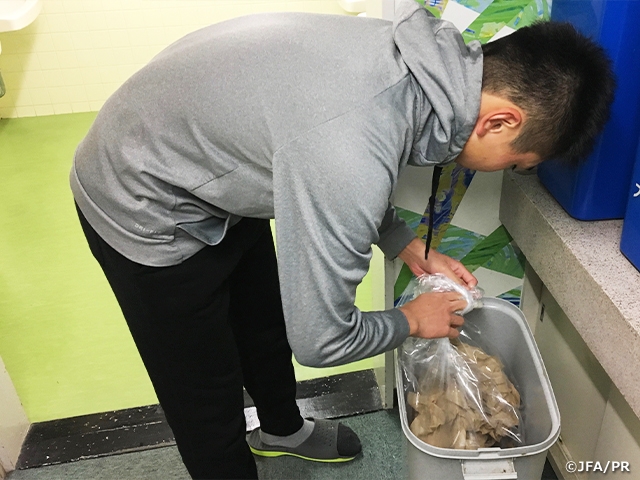 僕たちの寮の中には、多くの共用部分があります。共用部分はアカデミー生やスタッフ、多くの人が普段から使用する部分なので、常に綺麗にすることを意識しています。例えば、トイレのスリッパを並べたり、お風呂場の棚を整理整頓したりしています。自分の部屋の場合は、汚い状態だとサッカーに影響が出たり、持ち物がなくなったりしてしまいます。なので、普段から空いている時間を見つけて、少しでも身の回りを確認して、5S活動に努めています。