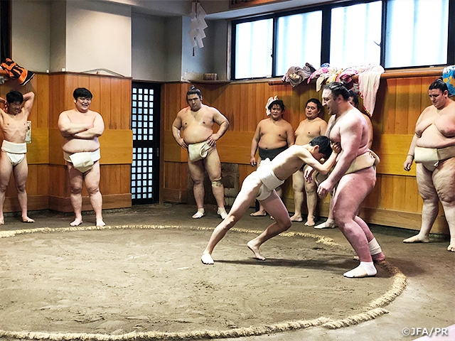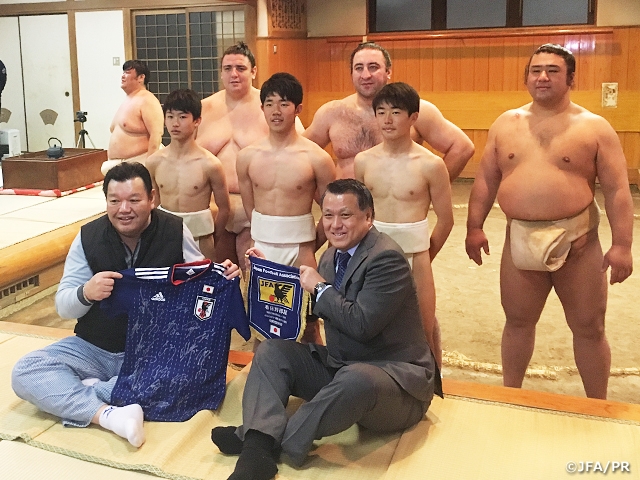 見学を終えた田嶋会長は「この実習は2008年から日本相撲協会の多大な協力のもとで実施されてきました。サッカー以外の日本文化などをアカデミー生たちに学ばせたいと思い始まりました。相撲が培った歴史、伝統に基づいた基本の大切さ、礼儀をしっかり学んで欲しいと思います。この空気感、バチンとぶつかり合う力強さは日本サッカーにも必要なもの。それらを肌で感じてほしいです」と語りました。