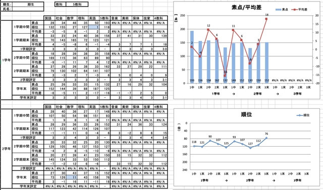 JFAアカデミー福島では、スタッフが選手の学習成績を把握するため、図2のような個票を作成しています。これを用いて、考査後に個人面談を実施するなど、選手の成績向上に向けて働きかけるようにしています。