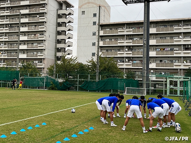 JFAアカデミー福島WESTの15期生は10月8日(土)から10日(月・祝)まで大阪遠征を実施しました。8日にはガンバ大阪ジュニアユースと、10日はセレッソ大阪西と練習試合を行いました。15期生は入校以降、宿泊を伴う行事をあまり行うことができていなかったこともあり、選手としてもチームとしても良い経験を積むことができました。11月より、冬に開催される高円宮杯 JFA 全日本U-15サッカー選手権大会の東海予選が始まります。今回の遠征で学んだことを踏まえ、東海予選に向けた意気込みを述べてもらいました。