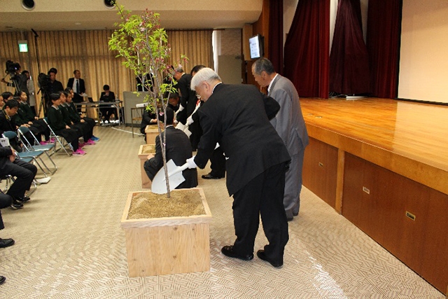 今治市から開校記念樹として桜をいただきました。