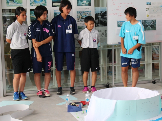 今治市にあればいいなという夢のスタジアムをグループで考え実際に模型を作りました。