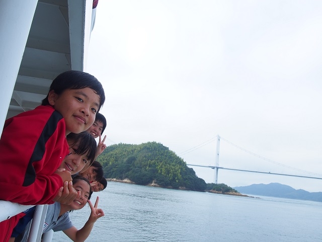 次第に天候もよくなり、フェリーからは今までみんなが歩いてきた来島海峡大橋がとてもきれいに見えました。