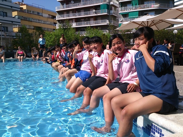 遅めの昼食後には、ホテルのプールに浸かってみんなでアイシングをしました。