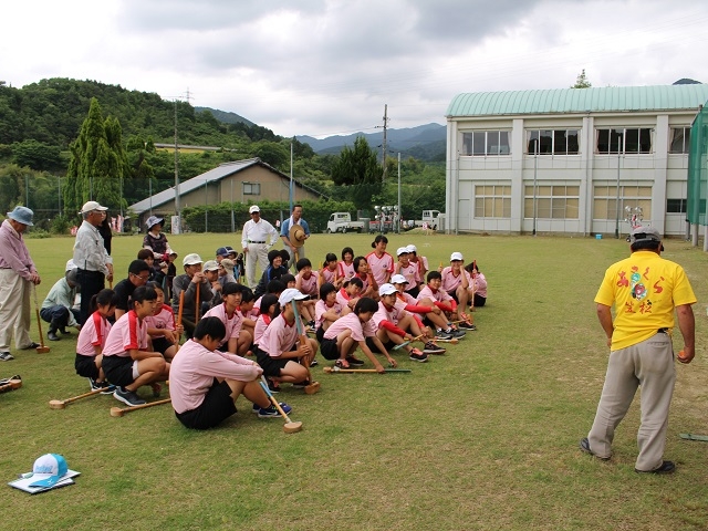 食事が終わると上朝グランドでグランドゴルフに挑戦しました。