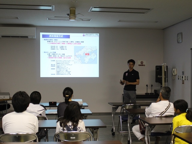 まず、影山チーフコーチより、アカデミーについて実際の生活の様子などの映像も交えつつ説明しました。