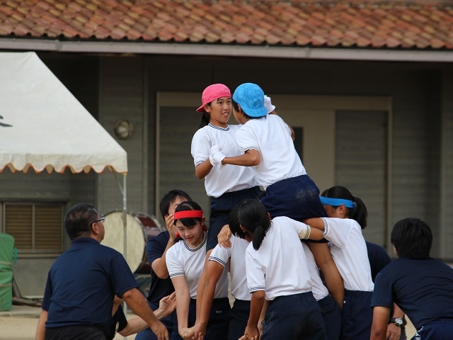 今年の運動会は私にとって初めての運動会でした。色々な種目に出場しましたが、一番印象に残っているのは騎馬戦です。とても盛り上がり、特に3年生同士の勝負はとても白熱し、おもしろかったです!また、応援合戦は練習期間中に天気が悪い日が多く、なかなか練習することができませんでしたが、少しずつ声もでるようになり、本番では練習通り行うことができました。そして、優勝することもできとても楽しい運動会になりました!