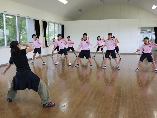 後半はダンスをしました。簡単なステップから少し難しいステップまで様々なステップを行いました。難しいところは先生についていくのに必死でしたが、頑張って取り組みました。