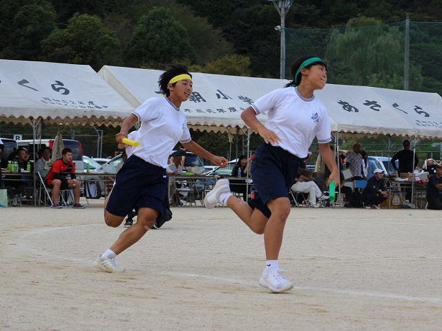 先月に行った朝倉中学校の運動会とは違った楽しさと真剣さもあり、とても楽しかったです。また、朝倉地域の方々とたくさん交流することができ、改めて多くの方に応援していただいているということを実感することができました。