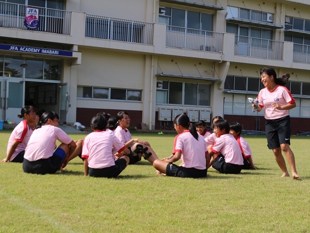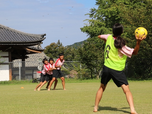 レクチャーのあとは、グラウンドに出てレクリエーションとして2チームに分かれてハンカチ落としとドッジボールをしました。どちらも裸足で行うことで、自分たちが植えた芝生を実際に直接足で感じることができました。思っていたよりもふわふわしていて、気持ちよかったです。