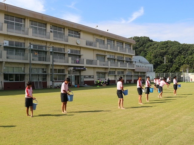 コーチたちの手入れのおかげで、夏休み前より濃い緑の芝生がしっかりと生えていました。