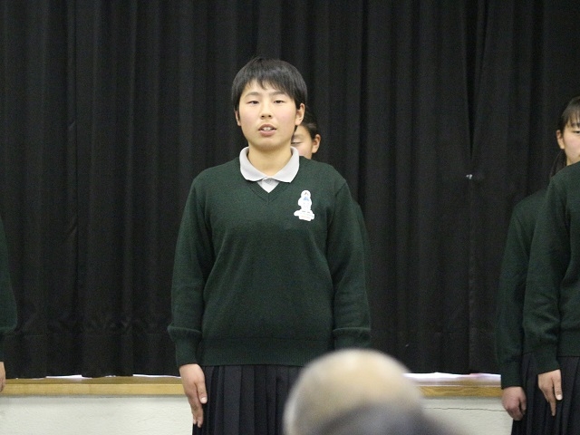 決意表明では私は『誇り』を発表しました。アカデミー生活で、私は新たな自分の誇りを見つけることが出来ました。この3年間の地域の方々のあたたかさ、仲間の存在など全てのことに感謝を忘れず、高校では新たな目標に向かって頑張ろうと思います。最後になりましたが、3年間本当にありがとうございました。