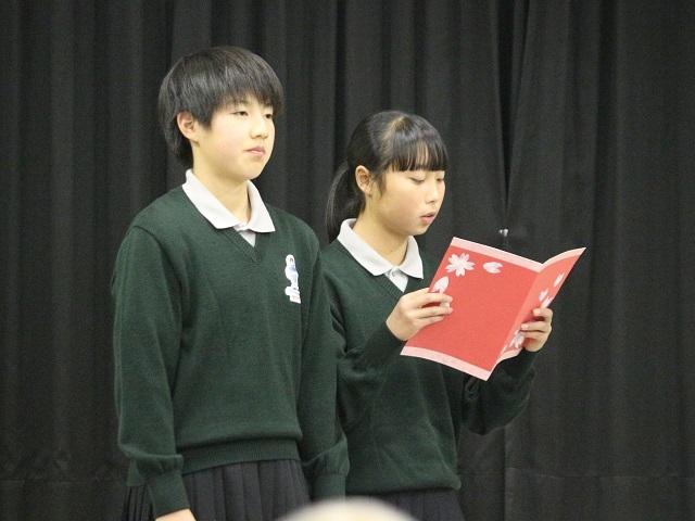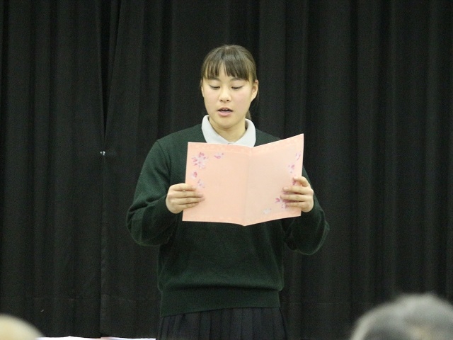 在校生による送辞。