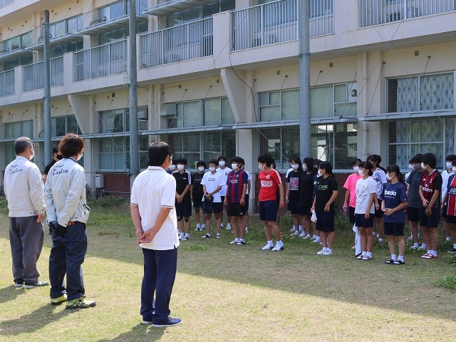 次に火事が起きたことを想定して、実際に居室から寮のグラウンドまで避難をしました。