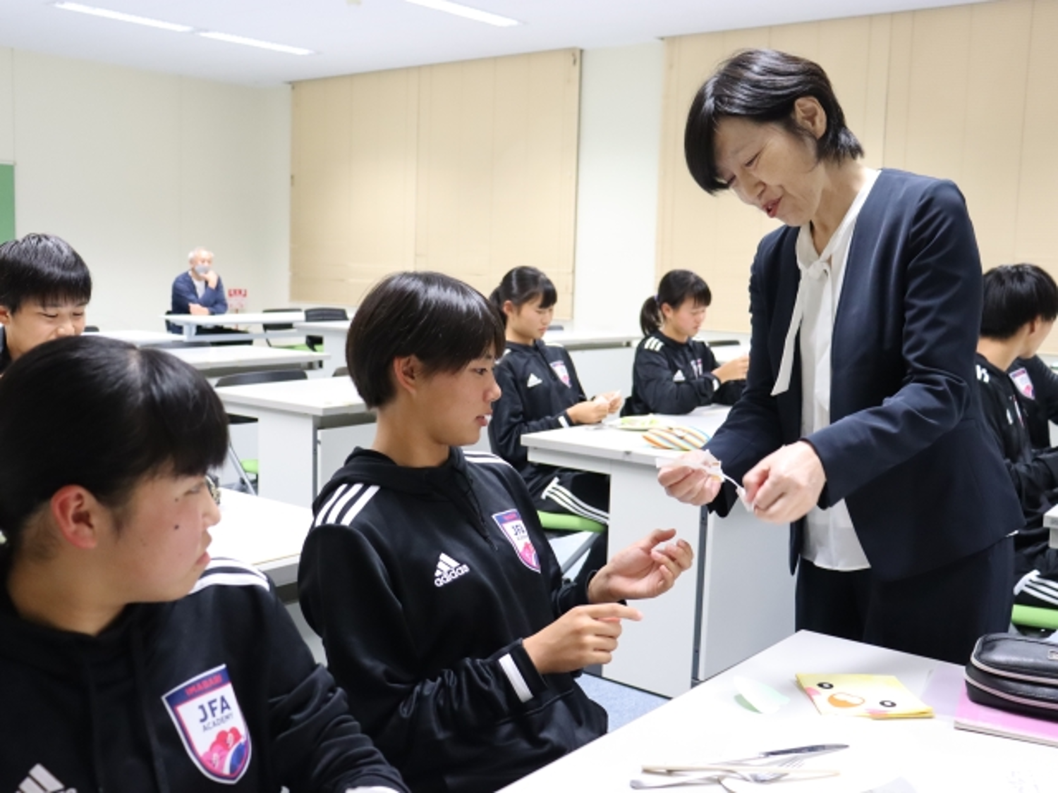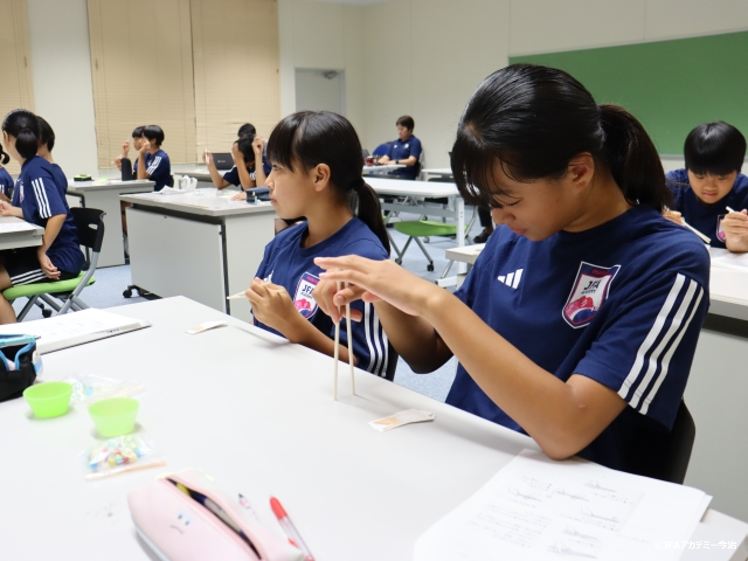 私はマナープログラムを受けて感じたことが2つあります。1つ目は、マナーの難しさです。箸の持ち方やお辞儀の仕方など、意識してでも難しいのに、それを習慣化していくのは大変だと感じました。2つ目はJFAアカデミーの人だからといってマナーを身につけるのではなく、1人の人間としてマナーを身につけることの大切さです。今回習ったことは、サッカーを辞めて、社会に出た時にもすごく役に立つことだと思いました。だからこそマナーを習慣化させ、身につけることが大切です。だから、これからも、日々気をつけていきます。