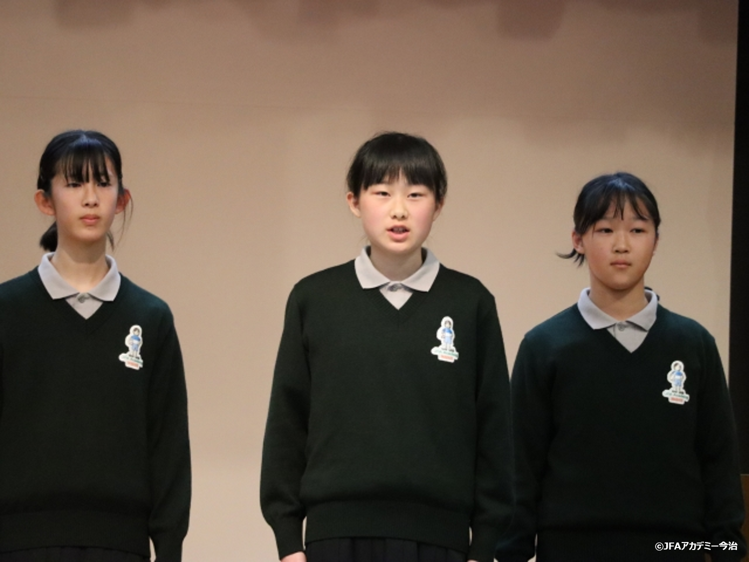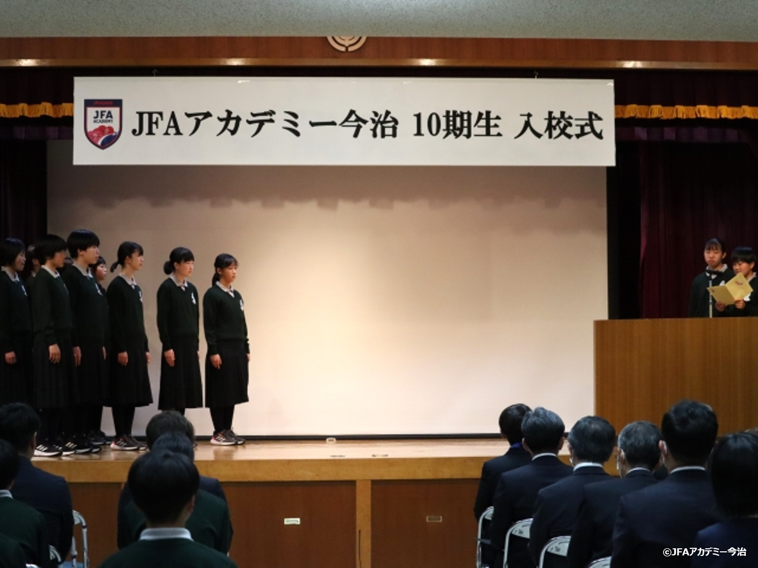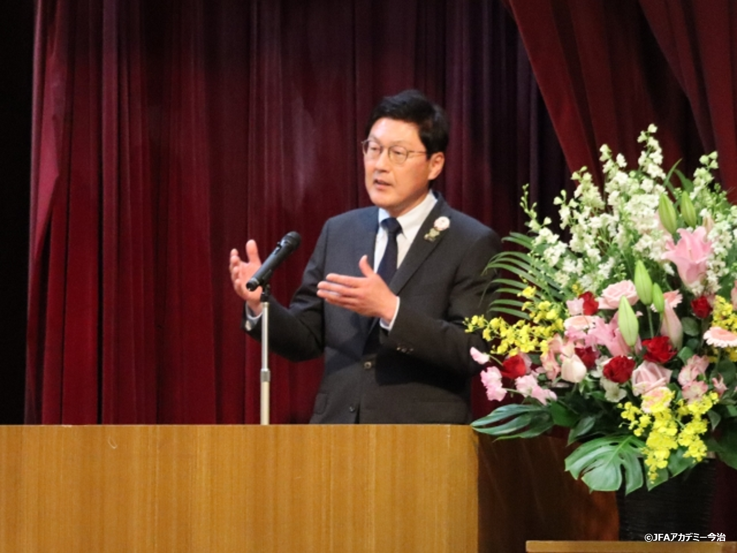 式では、三好公子スクールマスターの式辞、今治市の徳永繁樹市長からのご祝辞、日本サッカー協会(JFA)の能仲太司女子委員会副委員長からの激励の言葉など、10期生の入校を歓迎するメッセージをたくさんいただきました。