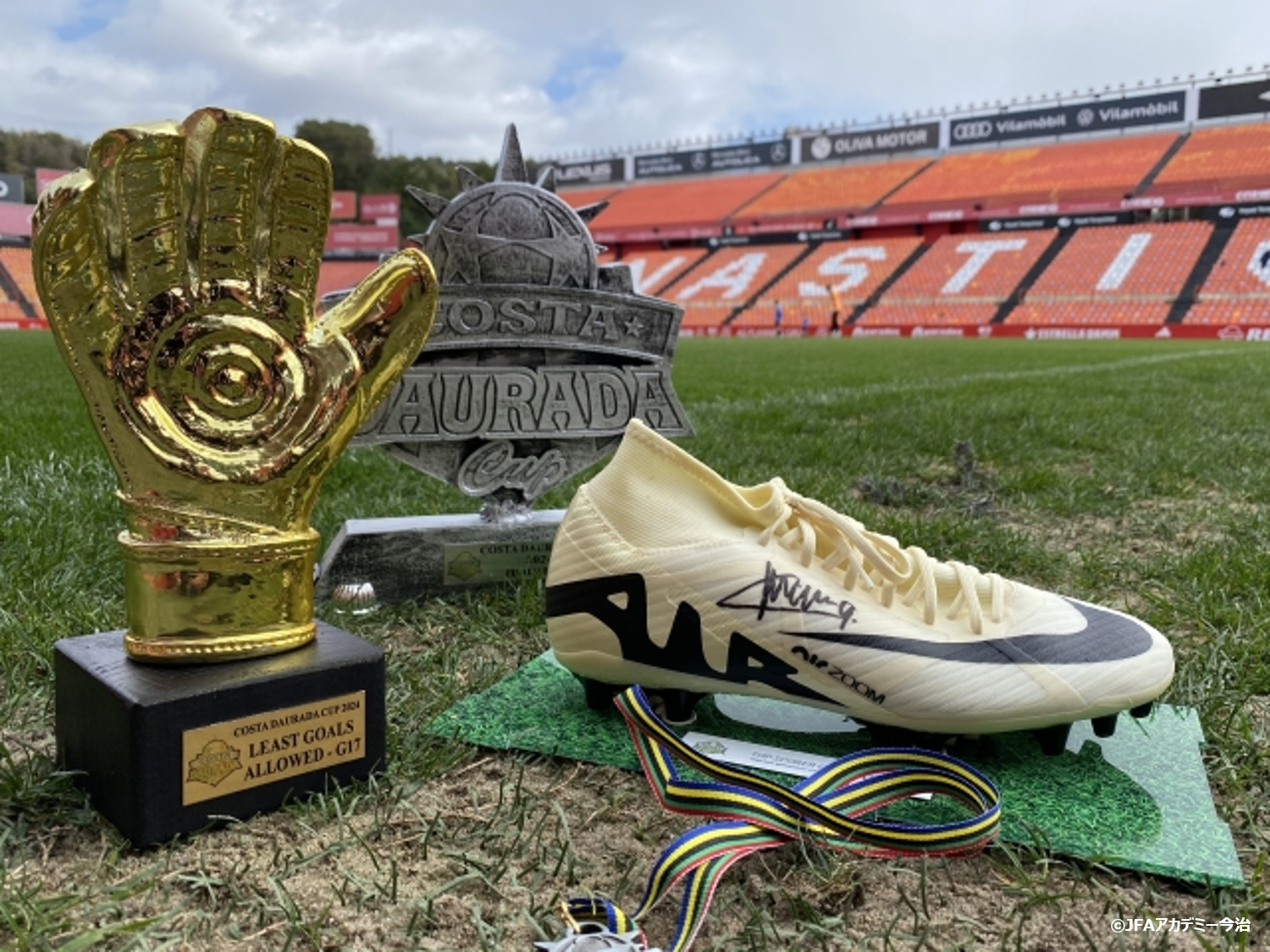 選手15名(8期生/中3 12名、四国地域推薦選手3名)は、スペイン・タラゴナで開催された「Costa Daurada Cap」に参加しました。U-17のカテゴリーで、スペイン国内だけでなくドイツやフランスなど32チームが参加する中、今の自分と向き合う素晴らしい機会となりました。オンザピッチでは、体格で勝る相手に最初は戸惑っていましたが、自分たちがトレーニングで取り組んでいることを再確認し、相手を圧倒する場面もありました。予選リーグを1位で通過し、決勝トーナメントも勝ち進み、迎えた決勝戦。1-1で決着がつかず、PK戦の末、惜しくも負けてしまいましたが、誇れる準優勝でした。また、得点王、最小失点GKはアカデミーの選手が受賞しました。