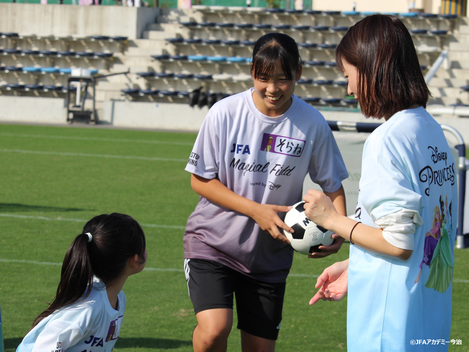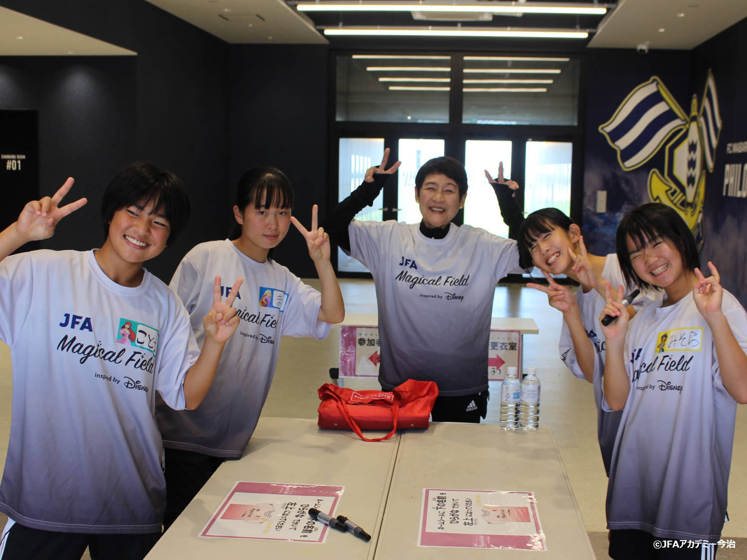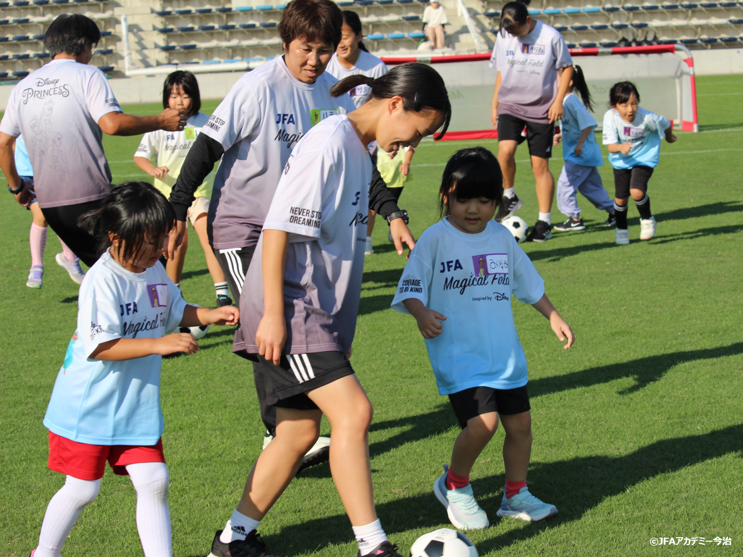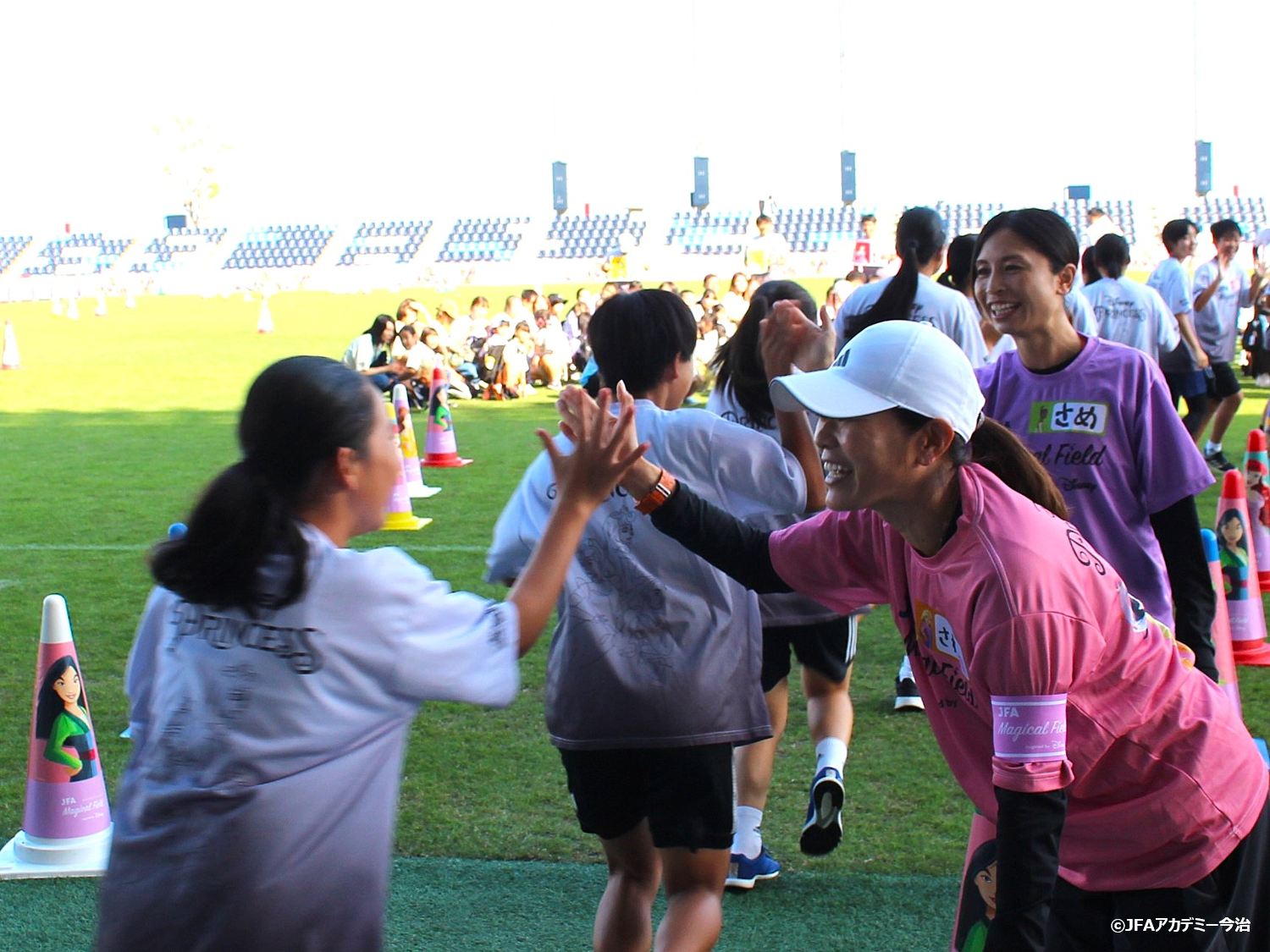 11月4日(月)にJFAマジカルフィールドがアシックス里山スタジアムで開催され、アカデミー生が午後からサポートスタッフとして参加しました。このイベントは、初めてサッカーに挑戦する女の子たちとその保護者を対象に、サッカーを楽しむ場を提供するものです。今回は、サッカー界を代表する澤穂希さんと鮫島彩さんがゲストとして登場し、参加者たちをさらに盛り上げました。