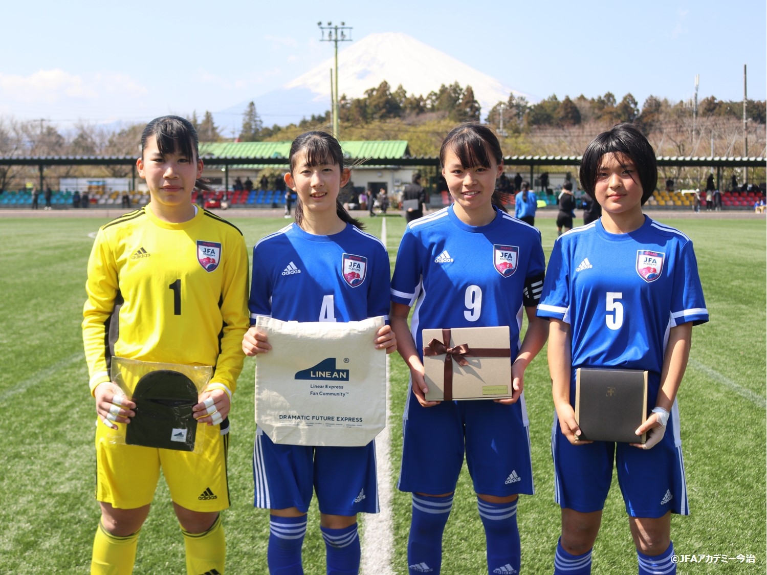私はアカデミーフェスティバルを終えて学んだこと、分かったことが3つあります。1つ目は、対戦相手の方がスピードもフィジカルもテクニックも上ということです。スピードに置いていかれるし、体を当てても当たり負けするし、自分達がボールを持てばすぐとられ、取り返すのがとても難しい、そんな相手でした。2つ目は、サッカーが上手い選手はコミュニケーション能力が高いということです。初めて会ったはずなのに、簡単に話しかけに来たり名前を聞きに来たりして本当にすごいと思います。3つ目は、ゲーム中ピッチの中で明るくポジティブな声がとても大切ということです。そんな声をかけ合うことで自信を持てたりみんなで心を1つにできたりすることを学びました。私はこの遠征でたくさん学ぶことができました。そのことをこれからも活かして来年は勝てるように頑張りたいです。