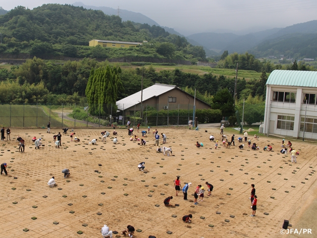 JFAアカデミー今治 宿舎グラウンドの芝生の植え付け作業を実施