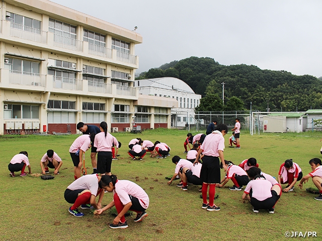 JFAアカデミー今治 JFAプログラムの一環として芝生の補修作業を実施