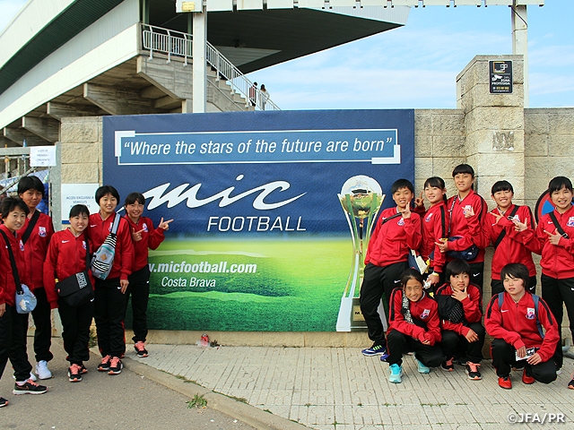 このスペイン遠征では、毎年カタルーニャ州で行われている「MIC2018」という大会に参加します。今年度はU-19~U-12年代までの42か国372チームが参加し、そのうち女子は2カテゴリー(U-19/U-16、U-14/U-12)に分けて大会が行われ、私たちは毎年U-14年代で参加していますが、U-19/U-16カテゴリーで出場します。このカテゴリーは4チーム2グループのリーグ戦で行われ、各グループ上位2チームが決勝トーナメントに進出します。今年度は予選リーグを2勝1敗で決勝トーナメントに進出しましたが、準々決勝のAtletico Madridに2-2(PK1-3)で惜敗しました。