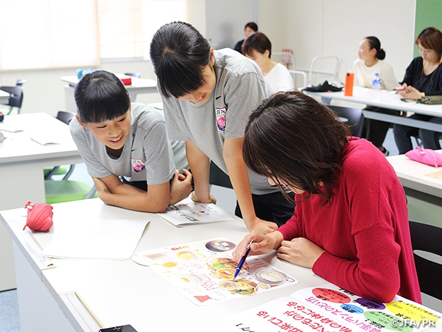 昨年までは年1回の開催でしたが、今年度は春と秋の2回実施します。初回となる今回は、「栄養・食育」、「婦人科」の2つのテーマについて、3、4期生と5期生に分かれ、学年に沿った専門的な内容を学びました。「栄養・食育」については、昨年に引き続き、管理栄養士で公認スポーツ栄養士の大田美香さん(スポーツニュートリションM代表)から自己管理の重要性と食事の大切さを、「婦人科」については、産婦人科医師の鵜久森夏代先生(つばきウイメンズクリニック)から思春期における女性の体の変化について教わりました。