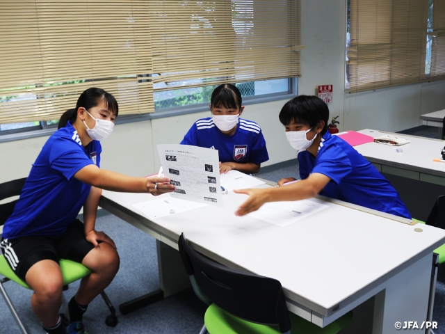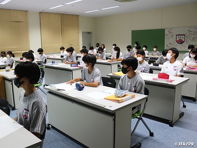 JFAアカデミー今治では10月4日(月)から3日間、ライフスキルプログラムを実施しました。今回のプログラムでは3学年合同で「目標設定と行動計画」および「ポジティブシンキング」について学習をしました。目標設定と行動計画ではPDCAサイクルについて学び、一人一人が実際にアカデミーのトレーニングにおける目標を設定しました。また、5・6期生(中学3・2年)を対象に、「信頼される選手になるために、日常からどのようなことに取り組み、積み重ねていくことが必要か」ということを考えました。今回のライフスキルプログラムで学んだことをアカデミーの活動中だけでなく、学校生活や各所属チームでの活動など、多くの場面で活かし、より成長していくことが期待されます。